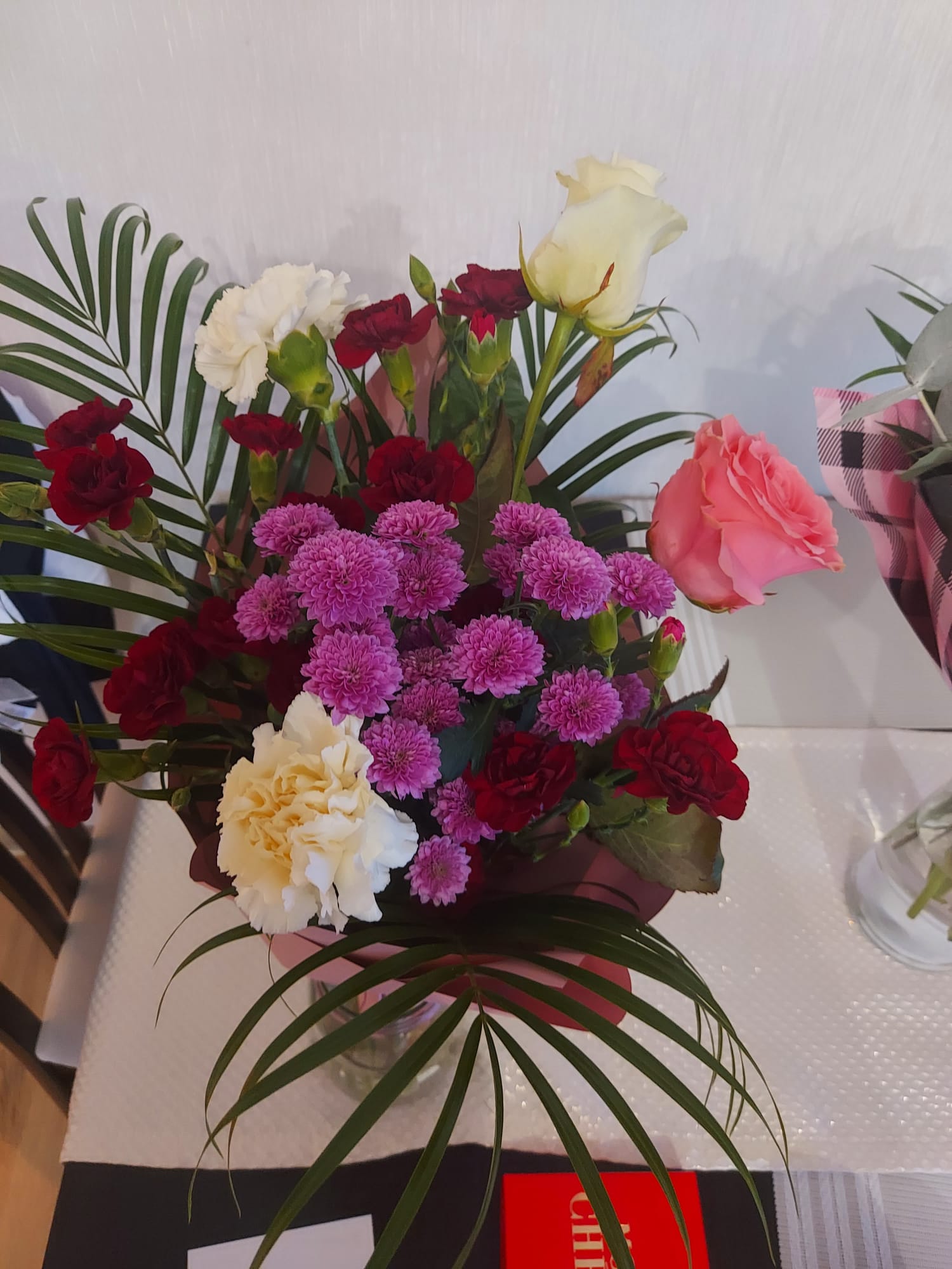 Zamów bukiet i podaruj uśmiech! Ten kolorowy i piękny bukiet z róż, goździków oraz margerytek, swoimi kolorami zachwyci niejedną osobę. Pamiętaj, że możesz zostawić wiadomość na bileciku.
