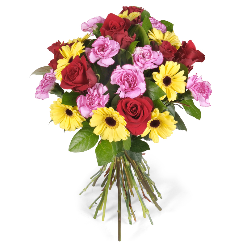 Zawsze świeże kwiaty Połączenie róż, gerber i goździków to gwarancja elegancji i dobrego smaku. Bukiet emanuje ciepłem i pozytywną energią. Sprawdzi się jako prezent lub dekoracja wnętrza. Każdy kwiat ma tu swoje znaczenie. To klasyka w nowoczesnej odsłonie.