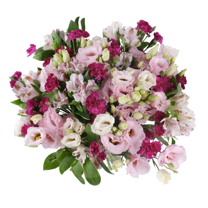 Subtelna eustoma, drobna alstromeria i mocniejszy goździk tworzą razem bukiet Miłosny List – idealny, by wyrazić emocje z klasą.