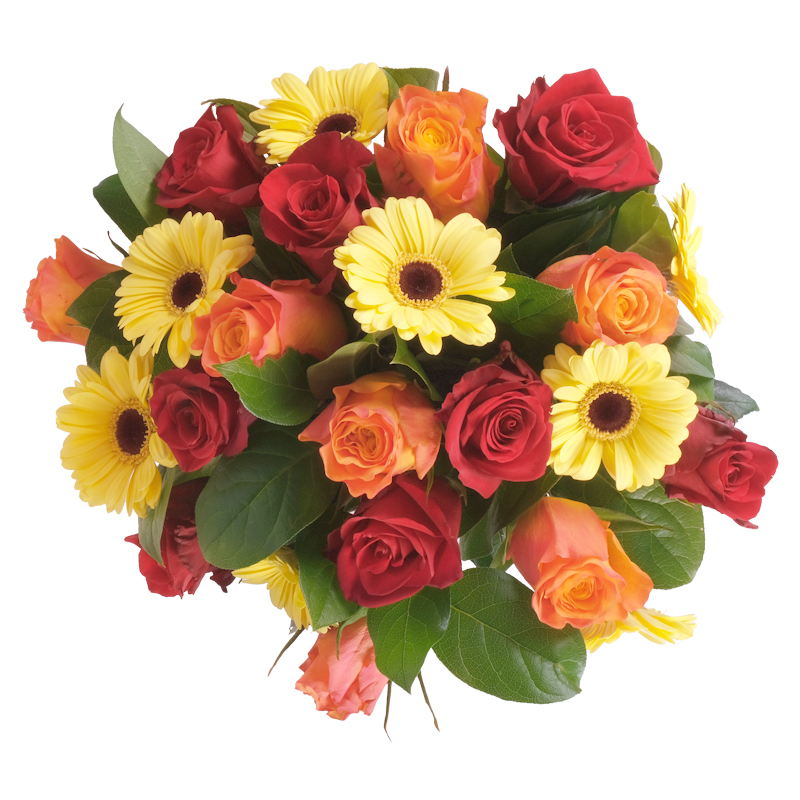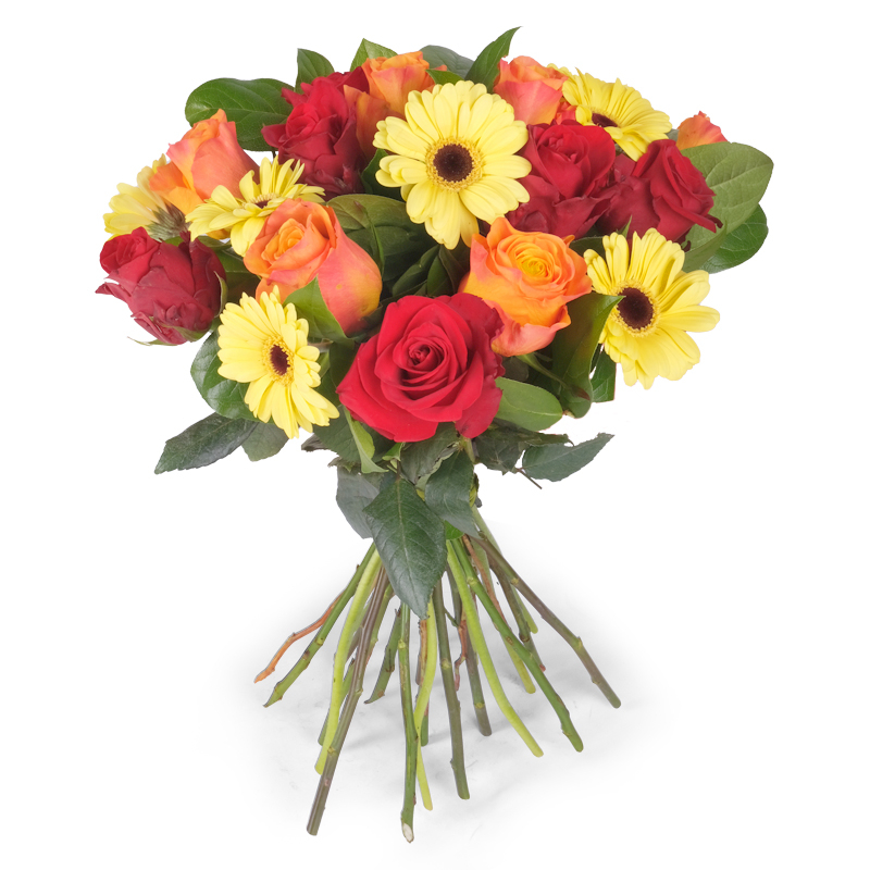 To bukiet pełen słońca i pozytywnych emocji. Kwiaty ułożono tak, by podkreślić ich naturalne piękno. Róże i gerbery tworzą spójną, pełną blasku całość. To kompozycja, która przynosi uśmiech. Wyślij prezent bliskiej osobie!